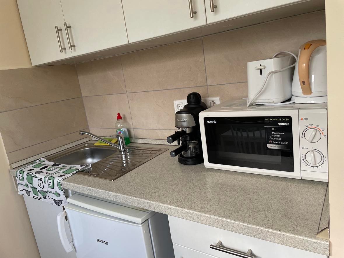 Konyhánk mérete-jellege-felszereltsége csak egy modern nyaralásnál szokásos főzésnek ad lehetőséget. Kérjük, ezt vegyék figyelembe.