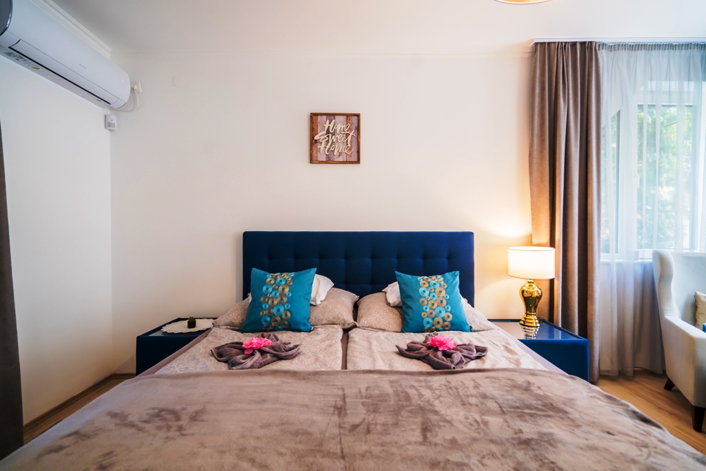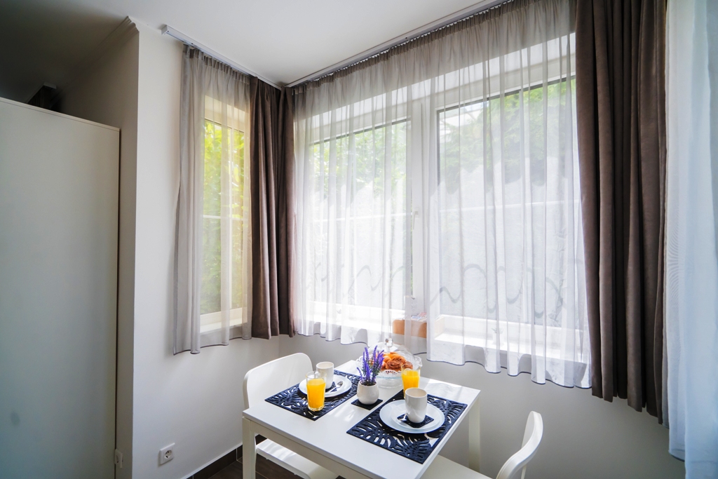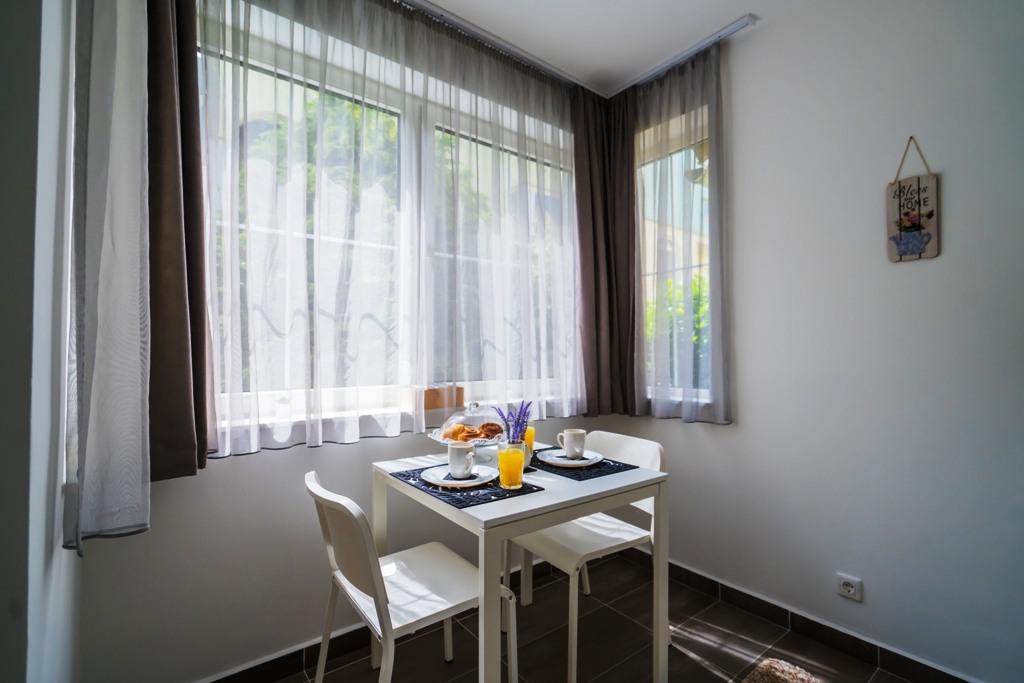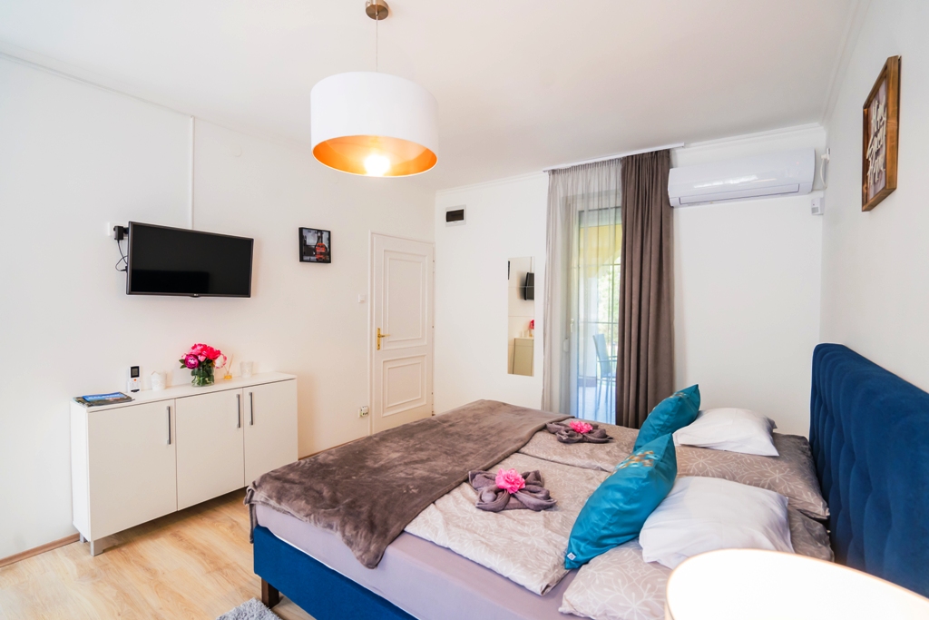 Földszinti apartmanunkhoz saját wifi hálózat, terasz, privát parkolók, napágyak, napernyők bérelhető