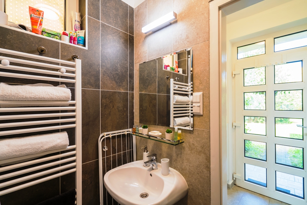 Zuhanyzós fürdőszobánk törölközőkkel, tusfürdővel, hajszárítóval , papuccsal is ellátott.